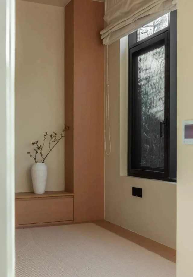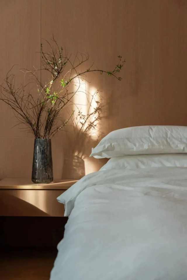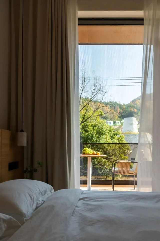 二层是为业主及其孩子回家时准备的居住空间,包含四间套房和一个起居室。起居室外延伸出一个宽敞的阳台,与一层的园林空间相连,视野开阔,远处的猫主题治愈乐园也一览无余。这里不仅是家人团聚的场所,也是与自然对话的空间。