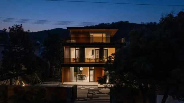 皖中一处山谷中坐落一别墅,四周山峦环绕和绿树葱葱,自然气息扑面而来,宁静而和谐。这里远离城市喧嚣,时间在此亦慢了下来,它是个适合静心生活与家族团聚的地方。这座别墅占地144平方米,建筑面积410平方米,原本是一处旧建筑,经由拆旧重建后焕然一新。设计团队从建筑、室内到景观,全方位思考,如何在这片土地上打造一座既能满足业主父母养老需求,又能利于家族团聚的理想居所。