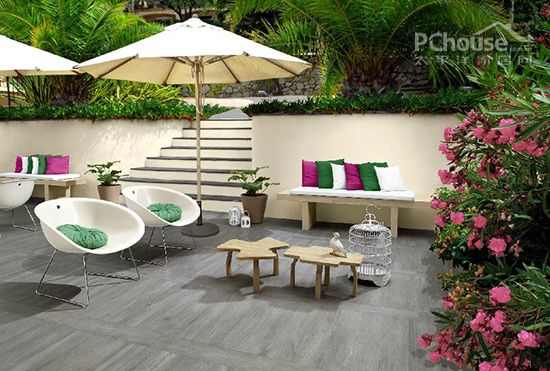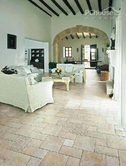 PChouse小编点评:复古做旧的仿陶面砖非常适合地中海风格的装修,如上图搭配上不规则的多规格混铺效果,看似不拘小节实质上都在规矩之中。