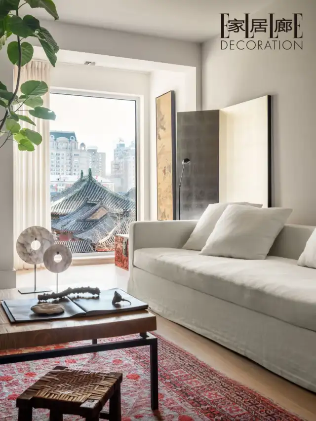 这个套内100平米的公寓,能让主人“金屋不换”地情有独钟,不止是北京二环中心的绝佳地理位置以及小区低密度的设计。恰恰就是因为小区选址毗邻这座古建筑庙宇,数年前白笛精挑细选了欣赏古庙最佳的楼层和朝向。他觉得这才是中国独有的风景。他们认为住在拥有一个好的窗景甚至胜过一副梵高的画。