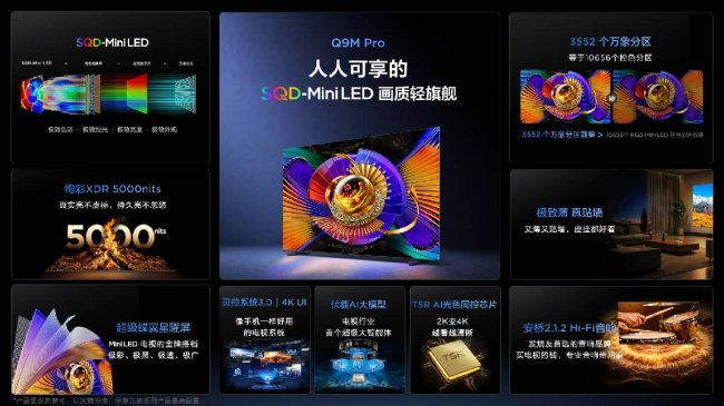 2026年3月17日, TCL SQD-Mini LED 电视春季新品发布会盛大启幕。TCL重磅推出搭载划时代SQD-Mini LED技术的Q9M Pro、T7M Ultra、T7M Pro 三大爆款产品,通过将机皇级 SQD-Mini LED 技术快速下放,实现从旗舰到主流系列的SQD-Mini LED 技术全价位覆盖,真正践行“当技术站上巅峰 普惠才有力量” 的技术理念。这也正式宣告,这一曾被奉为 “画质天花板” 的技术,开启了全民普及的新纪元 ——2026 年正式进入SQD-Mini LED 电视普及元年。