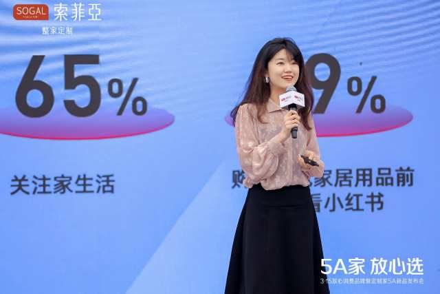 随着中国家庭结构、生活方式的变化,国民的居住观念、居住需求正在发生变化。发布会上,小红书商业全屋定制行业平台专家负责人古娴分享了“2025小红书家居设计趋势”:当代消费者正从“软装时代”迈向“陈设时代”,空间多功能化、兴趣场景化、动线漫游化成为主流趋势。她指出,用户需求正从“装修展示”转向“生活实用”,而索菲亚通过模块化设计、环保升级及全案整家解决方案,完美契合趋势。