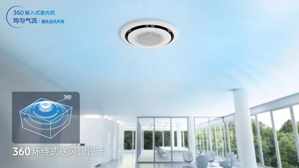 三星360嵌入式产品,时尚的外观大气优雅。空气百叶设计让风经过“温柔处理”,水平、垂直角度送风,暖风、冷风都不直吹人。