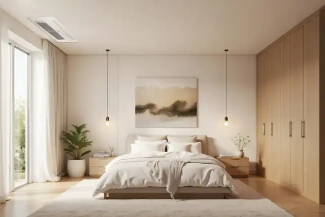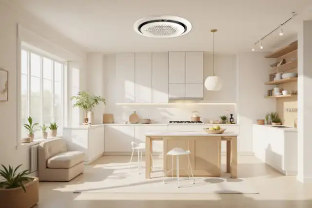 三星WindFree沐风嵌入式单向气流产品135mm纤薄机身嵌入吊顶中,吊顶侧面无需检修口,在不牺牲吊顶空间与层高的同时避梁安装。
