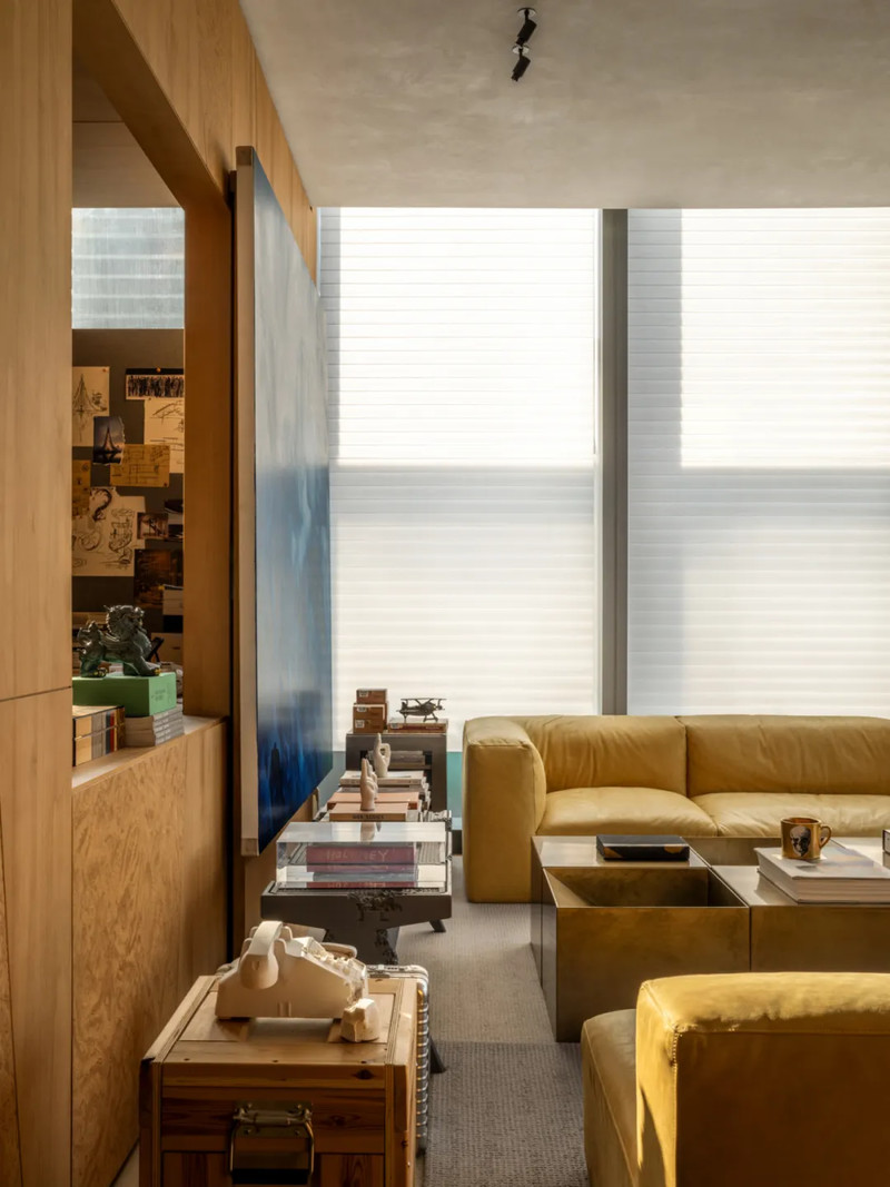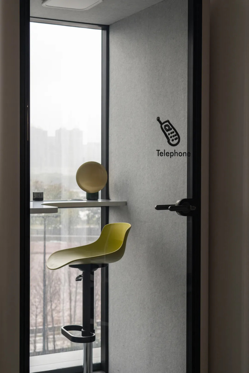 采用艺术性隔断模糊公私领域,连接处设置共享工作岛台,将功能隐于形式。关闭时自动生成沉浸式办公体验,打开时快速切换对话模式,刺激非正式交流,激发人的体验动线本身成为一场有趣的“行为实验”。