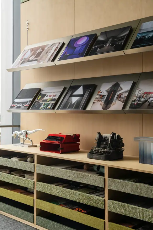 电话会议空间、材料柜、品牌展示墙等多功能汇聚,满足商务、行政、品牌、设计多部门多职位需求。这种设计使得办公空间更加灵活多变,能够应对不同部门和职位的工作特点,提高了工作效率和协作效果。