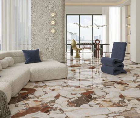 蒙娜丽莎以大规格瓷砖产品为特色,其艺术瓷砖在整体空间塑造上优势明显,通过细腻的纹理与丰富的色彩,打造出极具视觉冲击力的艺术效果。