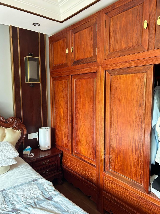 佛山的王女士,去年为135平的复式新家选择了盛世周木匠的全屋定制。她一开始担心红木家具会显得老气,设计师前后上门量尺三次,反复沟通方案,最终确定以缅甸花梨为主材,定制了沙发、茶台、餐桌和卧室大床。