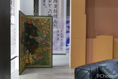 连接展厅内外的悬挂的12幅卷轴式纱帘,记录国内精英设计师对家居设计、生活美学思考的个人观点。伴随纱帘朦胧,展厅空间若隐若现。虚与实交相呼应,也在映照着东方文化的含蓄蕴藉,多了份让人一探究竟的神秘感。