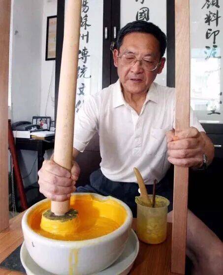1964年,20岁的仇庆年进入苏州著名颜料生产合作社“姜思序堂”,跟随老手艺人学习国画颜料制作技艺。几十年来,仇庆年始终坚持用手工把稀有的天然原料制作成国画颜料。为了了解画家的需求,他还专门花了两年时间学习画画。