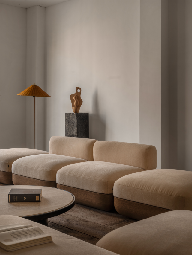 在空间另一侧,简约而不失优雅的“流年断章”沙发,柔和的线条勾勒出舒适的轮廓,仿佛是为疲惫的灵魂量身定制的港湾。坐在上面恍若灵魂穿越了时间的长河,它带你穿越那些残缺的遗憾,在夕阳西照的那束光里,诗卷缓缓打开,往昔的荣耀在眼前重现。