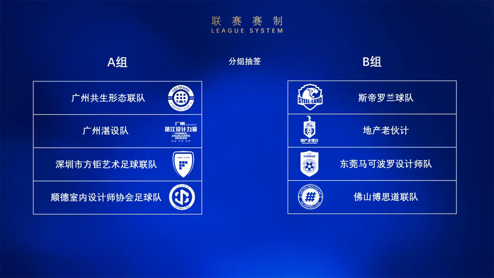在随后进行的分组,抽签仪式上,松下电气华南大区空调营业部副部长-唐克西先生和卫冕冠军队代表陈华京先生一同抽取。最后,第一次参加联赛的顺德设计师队与上届冠亚季军,广州共生形态、广州湛设、深圳方钜同分在A组,成为真正的“死亡之组”,而斯帝罗兰、地产老伙计、东莞马克波罗以及佛山博思道同为B组。