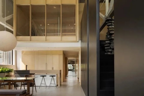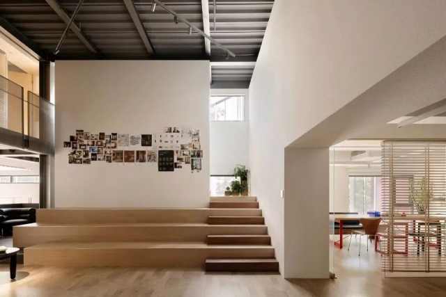 垂直交通动线合理规划,高效利用空间。四层保留了预制混凝土板的原始风貌,采用黑白色调,呈现出质朴的美感。