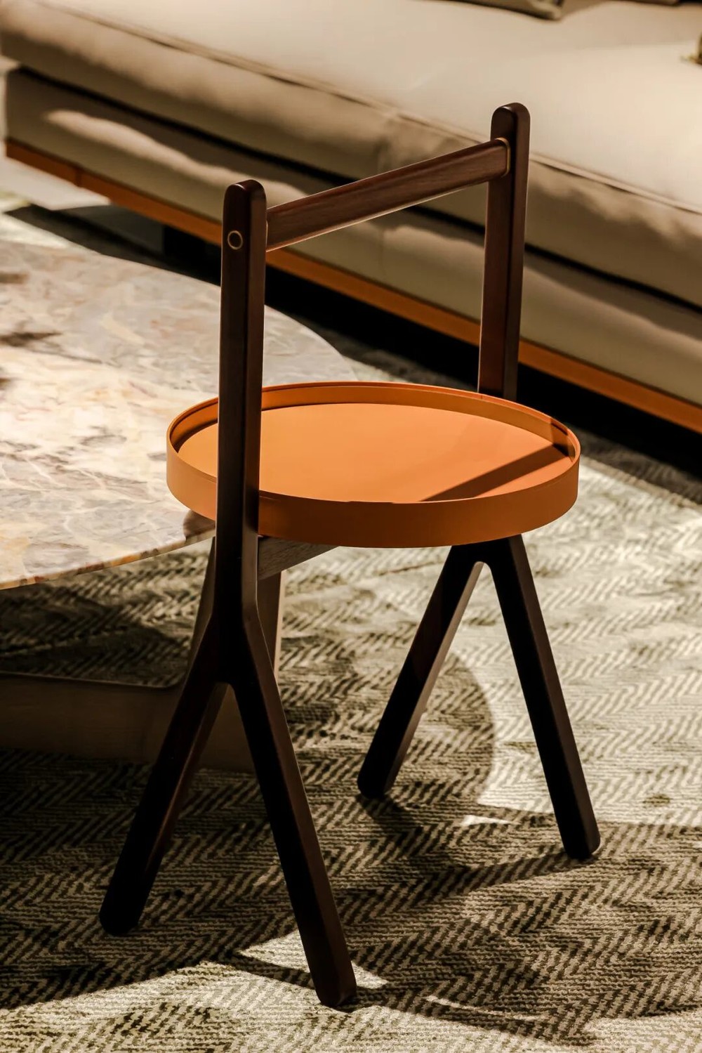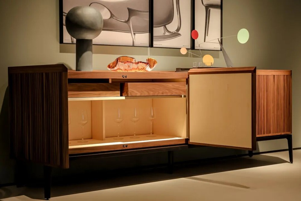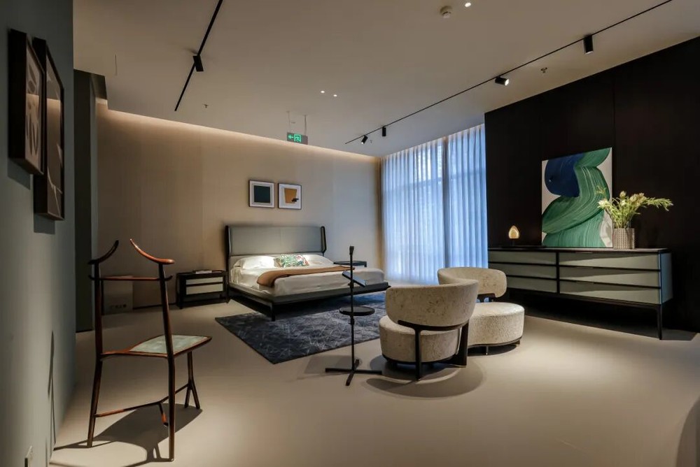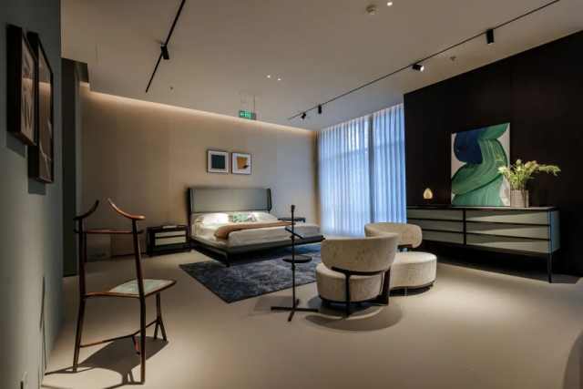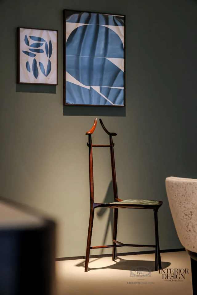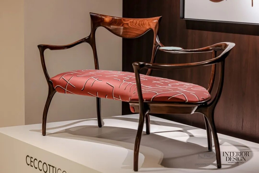 沿阶而上,二层设有?Ceccotti Collezioni?独立展区,通过经典与当代作品的对话,呈现两大品牌共融的意式生活美学。这个源自托斯卡纳的木艺品牌以温润线条与雕塑感造型著称,在这里以木艺之美勾勒出克制而优雅的空间气质。整座空间从材质到光影的层层递进,构筑出一段可感知的意式居住体验。