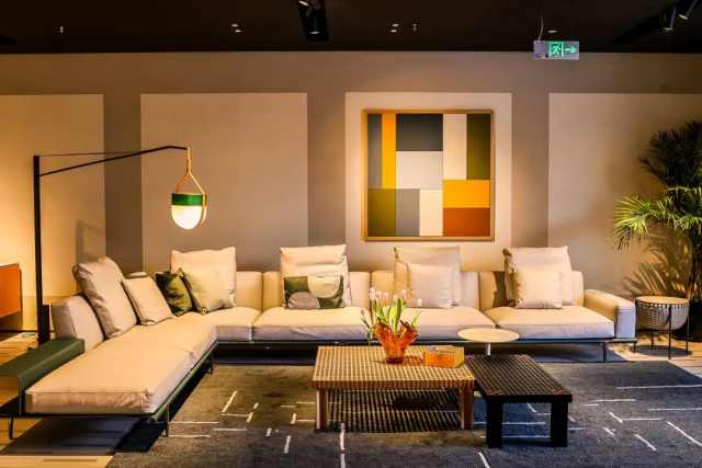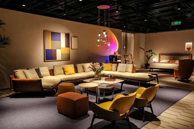 空间叙事从橱窗展开,Ozwald Boateng?以 Pelle Frau? Tribal 皮革重释经典 Vanity Fair 扶手椅,致敬百年工艺。入口区域,DUO 系列以优雅线条引导动线,客厅区域由 Get Back、Come Together 与 Let It Be 沙发铺陈开来,柔和的曲线与丰富的皮革层次营造出舒展而开放的生活氛围。