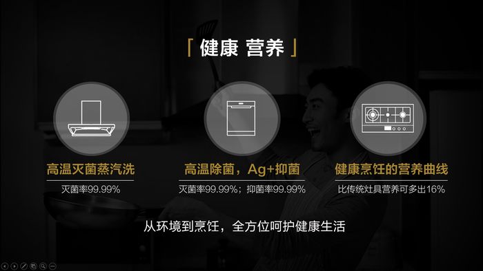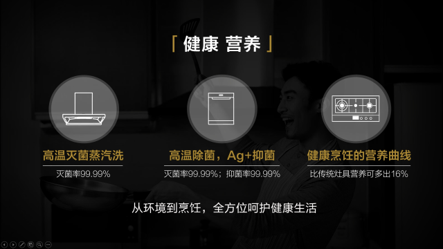 烹饪的结果是健康的。烟机的高温蒸汽洗的灭菌率可达99.99%,洗碗机灭菌之后的存储同样抑菌;更厉害的在健康智能的烹饪模式,相比于传统的灶具,煲个鸡汤营养可以多出16%。