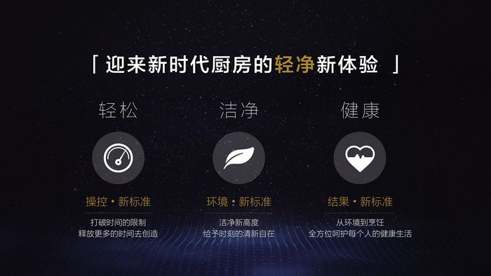 轻松、洁净、健康,构成了轻净新厨房的核心词汇,也是美的厨热对消费者给予的信心保障。在未来,美的厨热将基于这三大标准,更进一步优化产品布局,不断打造更具时代性,前瞻性的轻净新厨房,引领行业建立起轻净新风范。
