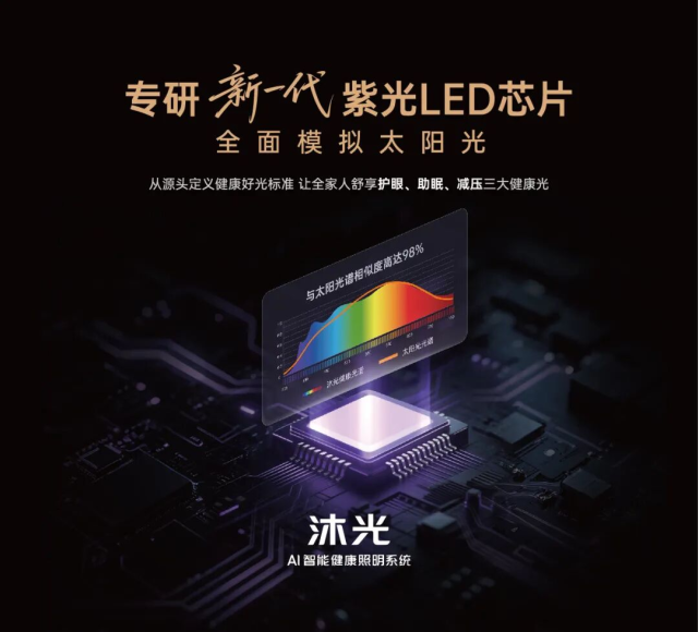 沐光专研新一代紫光LED芯片,全面模拟太阳光,并携手同济大学等国内顶尖高校,成立健康光实验室,从“视觉健康、生理健康、情绪健康”三大维度,共同打造更适合中国家庭的全年龄全场景健康光,让全家人都能舒享“护眼、助眠、减压”三大健康光效。