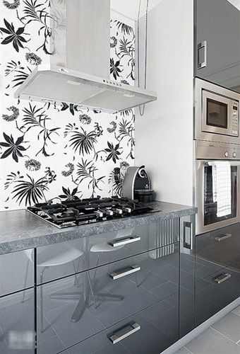 走进厨房,给人的感觉就是现代化,但是细节的处理也是如此美丽,一面灰白色的花色墙纸有着很美的感觉,搭配现代化的设计也是如此美丽宜人。