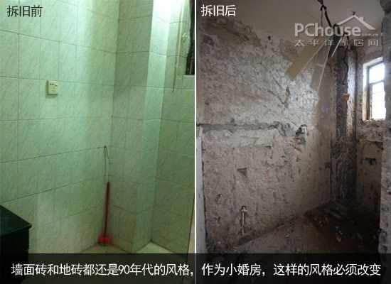 小编现场勘查的时候,milly已经开始动拆除旧装修了。卫浴间主要问题还是建材和洁具都开始老旧了,墙面砖和地砖都还是90年代的风格,作为小婚房,这样的风格必须改变。Milly表示,自己十分喜欢简约时尚的冷色调。