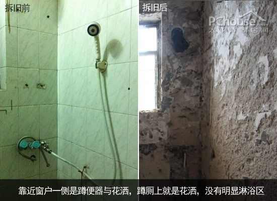 装修前,卫生间的建材老旧,装修也是90年代的风格。装修后,整个卫生间变得时尚了,蹲便器的位置移动了,划分出淋浴的空间。