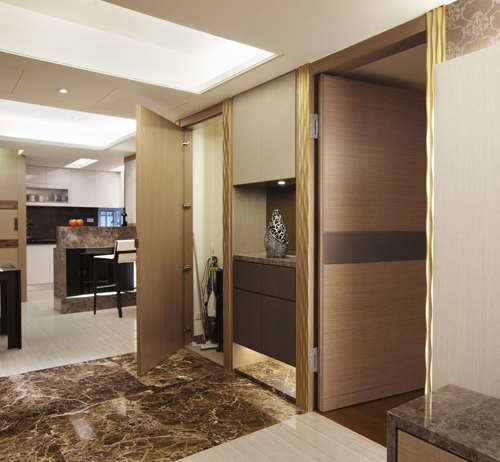 编辑推荐:餐厅后方除餐厨柜规划外,客用卫浴以拉门方法处理,关闭后空间纳入后方女儿房,转化出完整套房配置。
