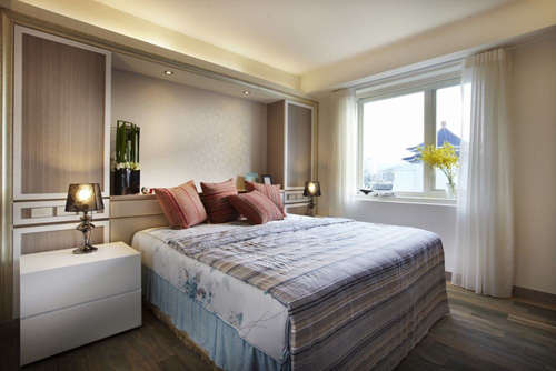 编辑推荐:透过走道上造型门片的整合,凭借拉门开关变化出双套房的实用空间。