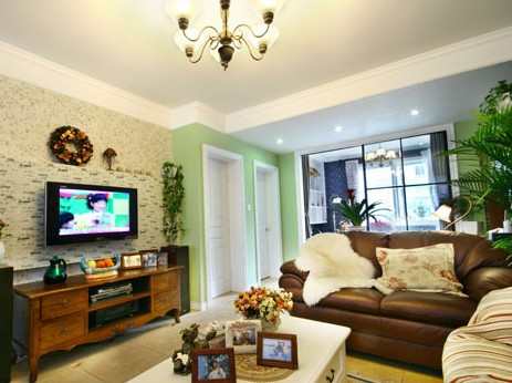客厅以柔和的淡黄色调为底色,富有田园特色的沙发和充满暖感的羊毛毯顿时让人感觉暖意融融。