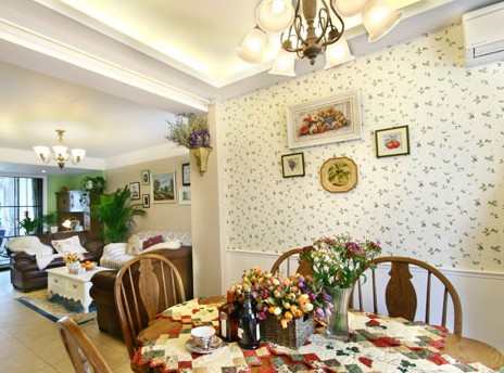 营造暖感,没有什么元素比田园风格更能直接表达了。倘若硬装的颜色搭配合理并配合田园风的软装打造最能产生柔和的视觉感受,这套充满自然特色的田园美家就是充分利用淡黄与碎花特色来打造温暖的家居环境。