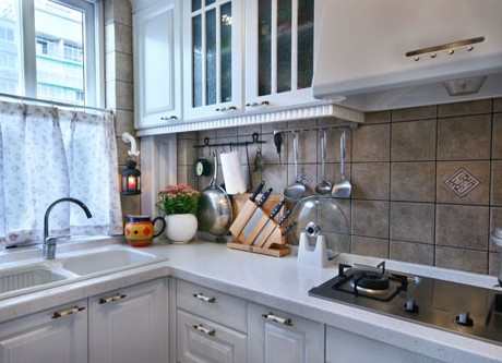 厨房,打造美食的地方,以白色调为主,窗户上依然是业主钟爱的碎花窗帘。