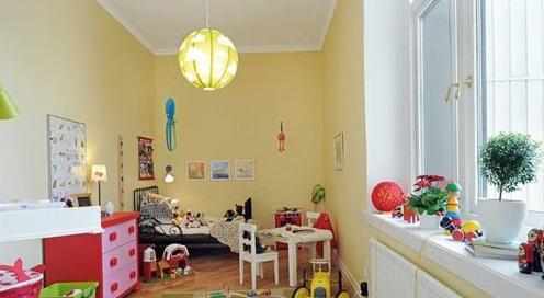 色彩艳丽的儿童房墙面和家具,以其明亮轻松的色调,以及通过色彩丰富的布艺软装进行点缀,让空间整体风格更加协调。而款式简洁却新颖的家具符合孩子们的纯真性格,轻巧的外形适合他们的身体特点,也是在房间里为他们尽可能留出一些活动空间。