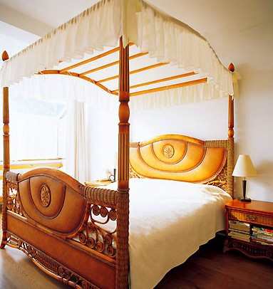 主卧极其简单,柱式床上系着白色床幔,白天的阳光和夜色的星辰都会洒向这片“白幕”。