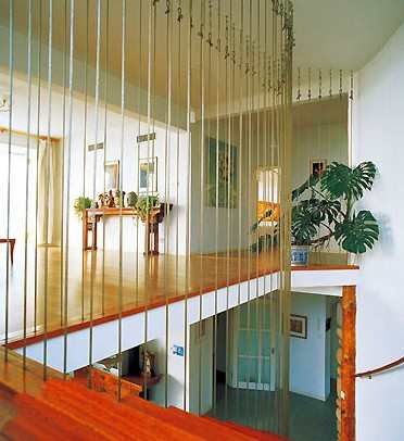 细细的钢索一根根拉到顶,牢固而通透,楼梯不再是一个闭塞的通道。