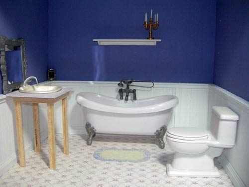 这是些美丽的蓝色的石板墙纸,给人似乎是生锈了的感觉。与马赛克瓷砖的脸盆和周围都比较搭配。小提示:将那些大小不一的,色彩相似的瓷砖组合在一起,能够增加质感,引起人们的兴趣,同时也显得十分紧凑。