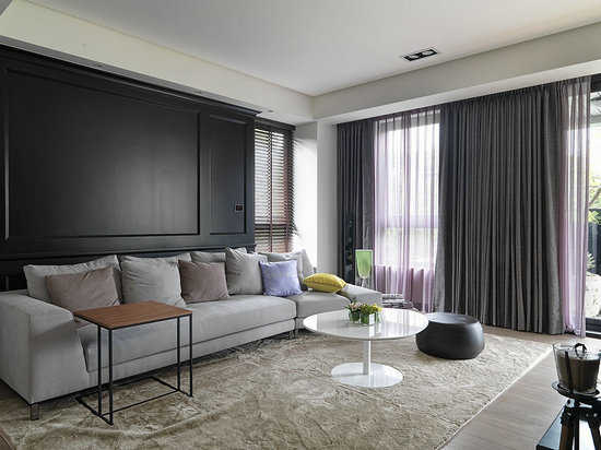 编辑点评:房内搭配海湾型沙发,微微的弯曲度,却能带来温暖包覆的感受。简洁的电视墙,预留给业主摆放收藏的空间。