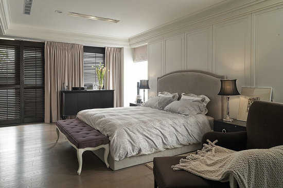 编辑点评:在主卧室为了能合乎业主年纪身分地位,运用喷漆线条营造出高雅大方的气氛。