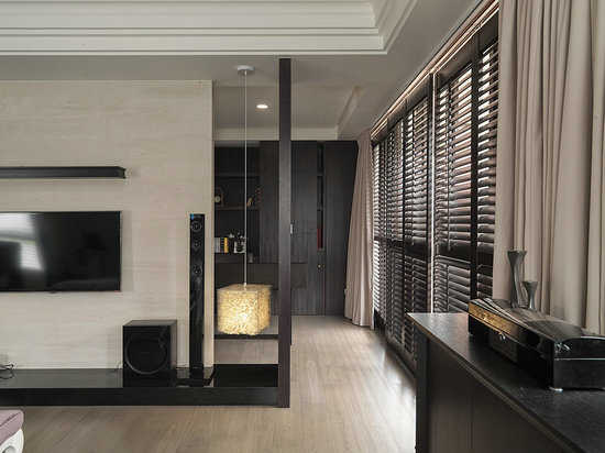 编辑点评:大面玻璃窗容易有不安全感,于是张馨总监跳脱以往素雅的设计方式,转为采用厚实的石材营造大器氛围。另外,也适时装饰高贵的兰花,衬托出与众不同的高雅气质。