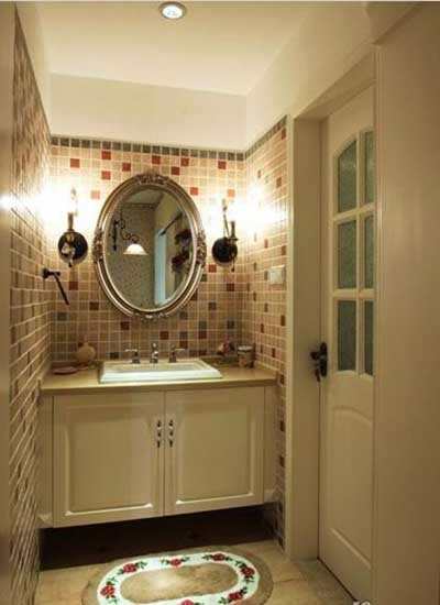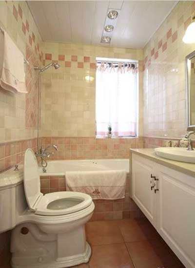 卫生间的瓷砖选择了暖色系的,粉嫩粉嫩的,非常好看。