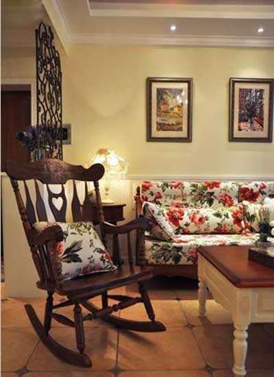 先看客厅,田园美式的独特魅力,复古的实木,以及浪漫的碎花。