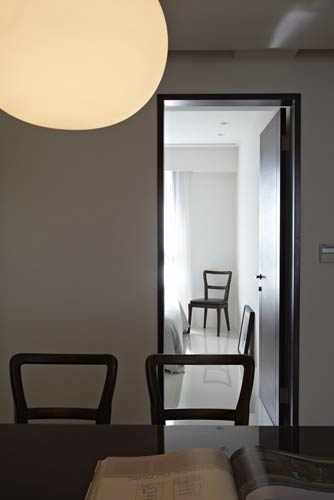 编辑点评:通过深色门框,沐浴在自然光下的空间,给人清爽舒适的视觉享受。