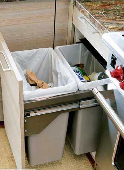 如果你的厨房还只有一个垃圾桶,那垃圾分类的环保问题如何解决?放在明处不卫生也有碍观瞻,都收到柜子里吧。