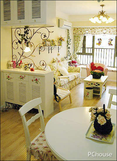 在玄关处的设计更加有爱,采用了白色的鞋柜与红色的穿鞋凳搭配出更加甜美的感觉。