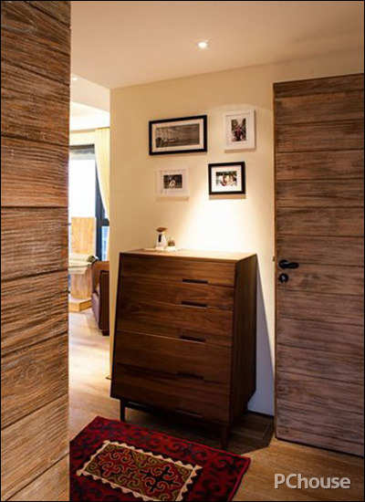 木纹的鞋柜,纹理细致顺直,平静却不乏张扬。