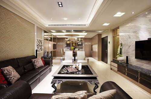 【太平洋家居网 设计频道】新成屋不理想的格局,造成长走道的空间浪费,故重新安排格局与动线,让空间更加完整。 客厅、餐厅采开放式设计,但餐厅周围多门片的零碎感受,形成视觉上的压迫,因此,设计师全以隐藏式处理门扉,修正立面被分割的缺点。