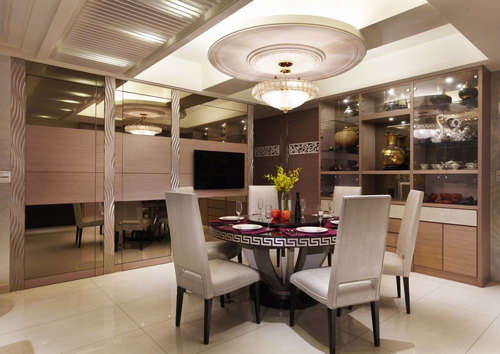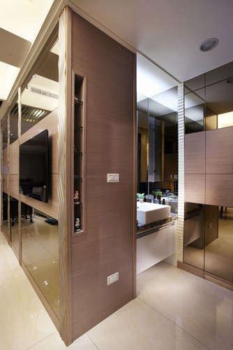 编辑点评:客餐厅采用开放式设计,但餐厅周围多门片的零碎感受,形成视觉上的压迫,因此,设计师全以隐藏式处理门扉,修正立面被分割的缺点。