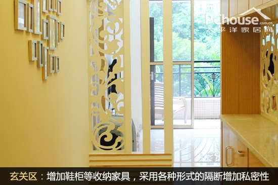 不少人家的户型是一进门就是客厅,而为了有所遮挡,同时为了方便进出门时的物件存取,基本上都会在进门处辟出部分原属于客厅的空间作为玄关。玄关是一个从内到外的过渡空间,一般会增加鞋柜等收纳家具,以及采用各种形式的隔断,以增加私密性。