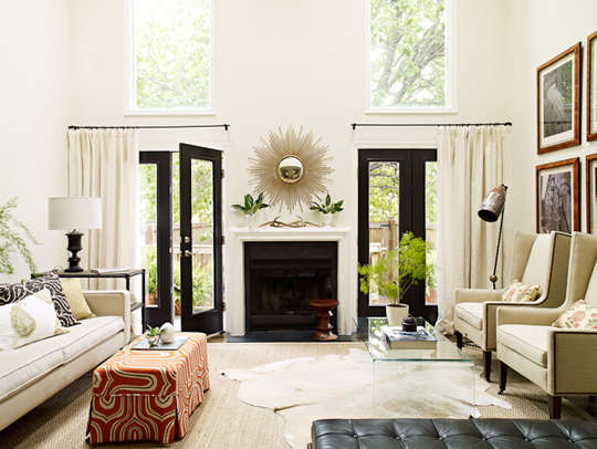 编辑点评:壁炉恰似中轴线,玻璃门、门帘、座椅左右相对,增添空间对称美的同时,还拓展空间视觉效果,使整体空间更加井然有序。