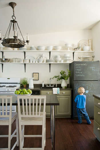 编辑点评:墙壁上挂张小黑板,写着每日菜单,温馨提示,颇富生活气息。此外,搭配黑色印花墙纸,温馨浪漫,可感受到浓浓的爱意。