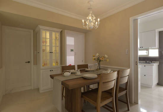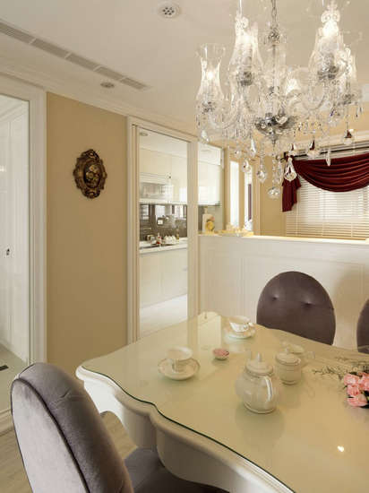 编辑点评:点缀精致水晶吊灯让餐厅区域更显温馨浪漫。
