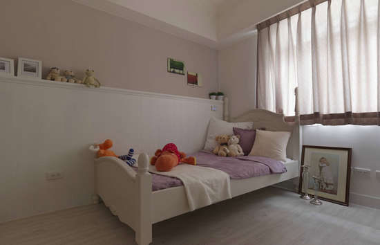 编辑点评:放下帘子可当作客房使用,也为小孩房预留下使用空间,收纳空间很大,造型时尚古典。